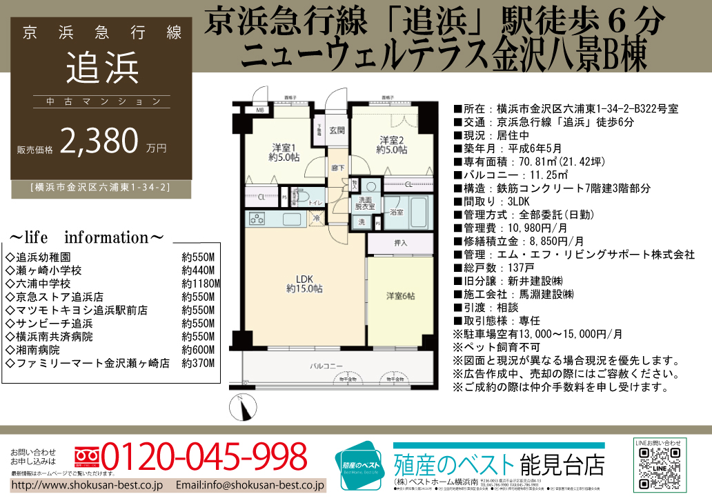 | 交通 | 京急本線 追浜駅 徒歩6分 |